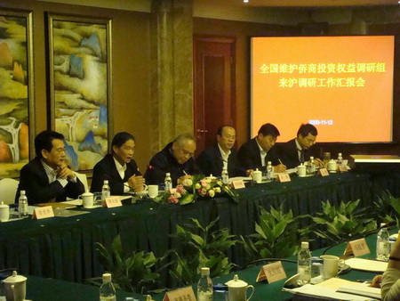 12日下午,上海維護(hù)僑商投資權(quán)益聯(lián)合調(diào)研工作匯報會和僑商座談會在上海衡山賓館召開。上海市僑辦主任崔明華向調(diào)研組匯報了上海維護(hù)僑商權(quán)益工作的基本情況、基本做法、主要體會和工作建議。上海“五僑”及相關(guān)委辦局的負(fù)責(zé)人參加匯報會并介紹上海各部門維護(hù)僑商權(quán)益工作情況。
