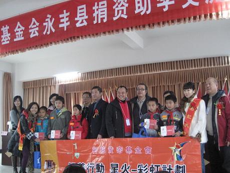 香港龍山基金會屬于非營利性慈善組織,由江西省港澳區(qū)政協(xié)委員鄧國容先生會同有識之士創(chuàng)建,多年來該基金會一直關(guān)注永豐縣教育事業(yè)、關(guān)注永豐縣貧困學(xué)生。星火——彩虹計劃是由龍山基金會和軒轅黃帝基金會聯(lián)手創(chuàng)辦的助學(xué)扶貧計劃,主要是扶持江西省革命老區(qū)、少數(shù)民族地區(qū)及貧困山區(qū)的文教事業(yè)。自2004年起,星火——彩虹計劃已經(jīng)組織了多次“贛港心連心”江西訪問交流團(tuán)來該縣開展捐資助學(xué)活動。累計已援建龍岡畬族鄉(xiāng)中心小學(xué)教學(xué)樓、瑤田鎮(zhèn)三灣小學(xué)軒轅黃帝教學(xué)樓、八江鄉(xiāng)高家小學(xué)軒轅黃帝教學(xué)樓、潭頭鄉(xiāng)楊梅江小學(xué)白求恩教學(xué)樓,資助金額42萬元;資助全縣21個鄉(xiāng)鎮(zhèn)貧困學(xué)生400人次,資助金額12萬元;捐助教學(xué)用品及學(xué)生學(xué)習(xí)、生活用品折合人民幣達(dá)5萬多元。