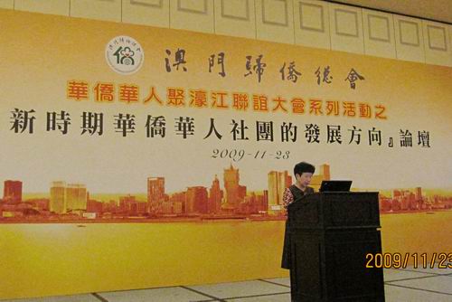 中新網(wǎng)12月2日電 據(jù)江蘇省僑聯(lián)消息,11月23日至24日,以江蘇省僑聯(lián)主席郁美蘭為團(tuán)長的江蘇省僑聯(lián)代表團(tuán)一行3人出席了在澳門舉行的“2009華僑華人聚濠江聯(lián)誼大會”。