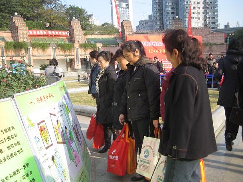 此次活動(dòng)的主題為“加強(qiáng)法制宣傳教育,服務(wù)經(jīng)濟(jì)科學(xué)發(fā)展”。溫州市僑辦副主任周海平和僑政處工作人員一大早就來(lái)到廣場(chǎng),擺放好宣傳圖板以及宣傳資料。在工作人員的積極宣傳下,前來(lái)咨詢(xún)涉僑法律法規(guī)的群眾積極踴躍,咨詢(xún)內(nèi)容包括房屋拆遷、回國(guó)定居、子女就讀及華僑參加社會(huì)養(yǎng)老保險(xiǎn)等方面問(wèn)題。據(jù)統(tǒng)計(jì),4日上午共發(fā)放《涉僑法規(guī)文件精選》、《涉僑法律法規(guī)選編》等宣傳小冊(cè)子370多份。