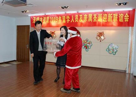 中新網(wǎng)12月25日電 據(jù)無(wú)錫市僑聯(lián)消息,12月20日下午,江蘇省無(wú)錫市僑聯(lián)、無(wú)錫市僑聯(lián)留學(xué)人員親屬聯(lián)誼會(huì)、無(wú)錫歸國(guó)留學(xué)人員創(chuàng)業(yè)商會(huì)在市華僑活動(dòng)中心舉辦了2009年無(wú)錫留學(xué)人員及親屬圣誕迎新聯(lián)誼會(huì)。無(wú)錫市委常委、統(tǒng)戰(zhàn)部長(zhǎng)周敏煒出席會(huì)議并講話。百余名在錫創(chuàng)業(yè)服務(wù)的歸國(guó)留學(xué)人員、部分留學(xué)人員家屬及市有關(guān)部門負(fù)責(zé)人參加了聯(lián)誼活動(dòng)。