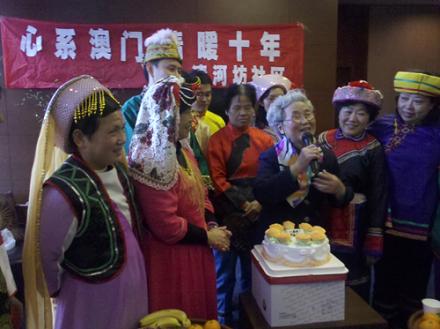 2006年潘曼霞、潘建英夫婦又收到了澳門工會聯(lián)合總會的邀請,赴澳門參加澳門回歸五周年慶典活動。兩位老人又親手精心制作了28套具有代表性的成人民族服飾,再次贈送給澳門政府作為兩位老人的禮物。