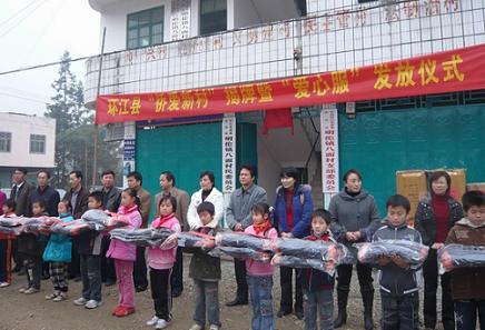 出席揭牌儀式的領(lǐng)導(dǎo)還向明倫鎮(zhèn)八面、八合小學(xué)及環(huán)江縣特教學(xué)校400多名師生發(fā)放了胡家儀先生及其公司捐贈的御寒羽絨服。(莫棉荷)