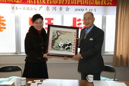 在日本訪問調(diào)研期間,僑務(wù)訪問團受到了日本廣東同鄉(xiāng)會的熱情接待。除會長陸煥鑫先生因公事出國訪問外,該會名譽會長郭少東、顧問李國松、副會長朱銘江、副會長潘創(chuàng)始率十幾位理、干事在會館迎候會見,召開歡迎會,雙方進(jìn)行了熱情友好的交流。梁紅健在會上介紹了茂名經(jīng)濟社會發(fā)展情況,同時向該會贈送了茂名投資指南、茂名特式的南玉鎮(zhèn)紙以及富有中國特色的刺繡工藝品。朱銘江介紹了日本廣東同鄉(xiāng)會的總體情況,并向訪問團回贈了“吉祥虎”紀(jì)念品。會后廣東同鄉(xiāng)會備了豐盛的午宴熱情款待僑務(wù)訪問團,席間鄉(xiāng)情濃郁,追今撫昔,無所不談,令人深感同胞情熱、鄉(xiāng)情寶貴。訪問廣東同鄉(xiāng)會后,訪問團隨后走訪了居住日本橫檳、京都和大阪的旅日僑胞和留學(xué)日本學(xué)生,對茂名市旅日僑胞情況有了進(jìn)一步的了解。