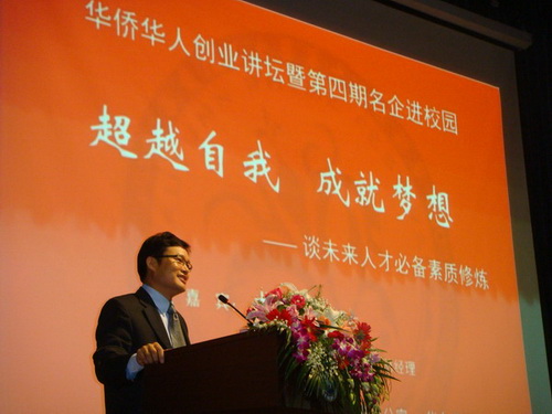 中新網(wǎng)12月30日電 據(jù)上海市僑辦消息,近日,由上海市僑辦與華東理工大學共同主辦的“華僑華人創(chuàng)業(yè)講壇”第三講在華東理工大學逸夫樓舉行。本次講壇特邀英特爾公司中國執(zhí)行董事、總經(jīng)理戈峻博士作主題為《超越自我,成就夢想――談未來人才必備素質(zhì)修煉》的精彩報告,并與華東理工大學師生互動交流。