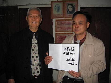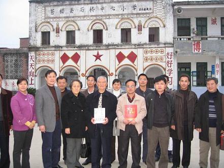 當(dāng)天下午,年近九旬的莊炎林,不顧旅途的疲勞,在梧州市僑聯(lián)主席鐘小欣、蒼梧縣統(tǒng)戰(zhàn)部部長(zhǎng)李燕芬等領(lǐng)導(dǎo)的陪同下,來到蒼梧縣石橋鎮(zhèn)中心小學(xué)考察。其中心小學(xué)是莊炎林先生在抗日戰(zhàn)爭(zhēng)期間,以教師身份掩護(hù)開展地下工作的地方。今日重游故地,莊炎林先生格外激動(dòng),并向陪同人員講起了當(dāng)年的工作情景。隨后莊炎林先生一邊聽取該學(xué)校的情況,一邊參觀當(dāng)年曾用過的工作室,并在留言簿上題詞:為國(guó)利民,奉獻(xiàn)力行。(蔡光天)