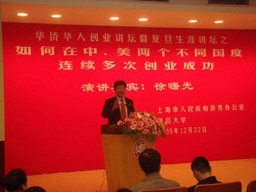 中新網(wǎng)12月31日電 據(jù)上海市僑辦消息,12月22日晚上,上海市復(fù)旦大學(xué)光華樓102報(bào)告廳里座無(wú)虛席,由上海市僑辦與復(fù)旦大學(xué)共同主辦的“華僑華人創(chuàng)業(yè)講壇”第四講活動(dòng)舉行。
