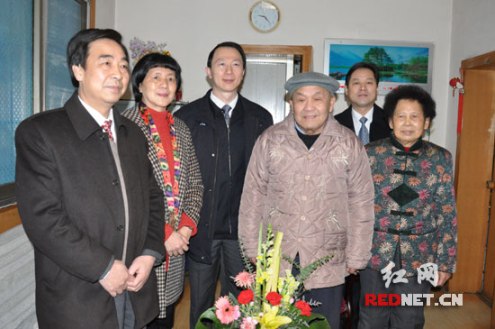 臨別前,董中原向老人送上春節(jié)慰問金,湖南省僑聯(lián)還將“建國六十周年、僑聯(lián)三十周年”紀(jì)念郵冊贈送給了劉老。