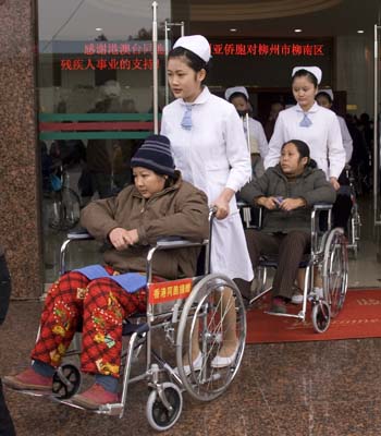 此次捐贈經(jīng)九三學(xué)社廣西區(qū)委和柳州市政協(xié)牽線搭橋,柳州市政協(xié)副主席覃國安參加捐贈儀式。除了在柳南區(qū)給殘疾人士捐贈60臺輪椅及慰問金和毛巾、藥油等慰問品外,龍鳳翔和香港同胞羅佩聲一行還將分別給柳城縣和融安縣的殘疾人士捐贈58部、42部輪椅及慰問金、慰問品。