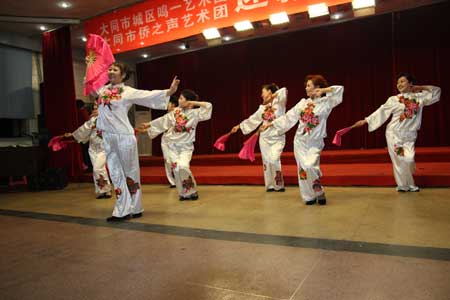 據(jù)藝術(shù)團(tuán)團(tuán)長周玉萍介紹,“僑之聲”藝術(shù)團(tuán)成立四年來,始終堅(jiān)持以僑為本、為僑服務(wù)的工作理念。在大同市僑聯(lián)的正確領(lǐng)導(dǎo)下,經(jīng)常下基層以文藝的形式宣傳《僑法》、慰問僑胞,僅2009年參加的全國和省市舉辦的文藝活動達(dá)6場,并獲得有關(guān)部委的表彰。在新中國成立60周年之際掀起的大唱“紅歌”活動中,藝術(shù)團(tuán)為基層演出并現(xiàn)場輔導(dǎo)更是高達(dá)20多場。領(lǐng)導(dǎo)的支持、政治上的鼓勵極大的帶動了歸僑僑眷的工作熱情。