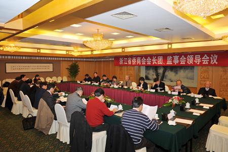中新網(wǎng)1月29日電 據(jù)浙江僑聯(lián)網(wǎng)消息,2010年1月24日晚,浙江省僑商會在浙江世貿(mào)君瀾大飯店舉行會長團(tuán)、監(jiān)事會領(lǐng)導(dǎo)會議。