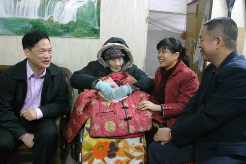 中新網(wǎng)2月1日電 據(jù)廣州市荔灣區(qū)僑聯(lián)消息,1月25日上午,廣東省廣州市荔灣區(qū)委副書記羅思源在該區(qū)僑聯(lián)主席朱小玲、南源街黨工委書記王增光等的陪同下,上門慰問107歲美國、加拿大僑眷邱麗雯婆婆。這已是羅思源連續(xù)三年春節(jié)前慰問邱婆婆了。