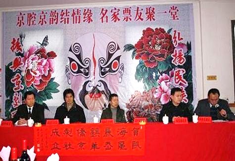 中午十一時,大會程序進(jìn)行完畢,帷幕剛落,京劇的鑼鼓聲,琴聲齊聲啟鳴,將慶典活動推向高潮。精彩的京劇演唱表演開始,來自區(qū)、市、省和各地的41名京劇演唱名家一個接一個,一腔換一腔,腔腔調(diào)調(diào),鏗鏘有力,京劇唱腔交響著鑼鼓的強(qiáng)烈節(jié)奏,震撼了整個大廳,響徹王宅村僑聯(lián)活動中心的上空。