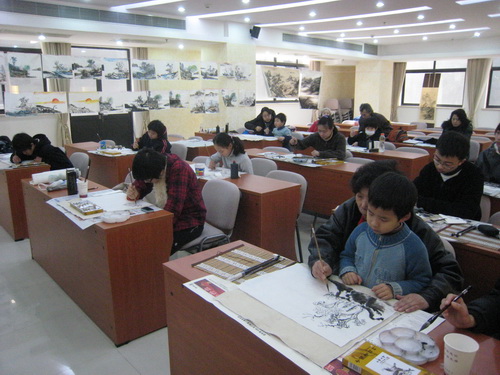 2009年12月5日由華僑青年、華僑子女、少數(shù)民族子女、困難家庭子女組成的首期山水畫班正式開班。雖然學生的水平參差不齊,而且年齡跨度很大,但經(jīng)過老師的因材施教和自己的勤奮刻苦,在兩個月內都取得了很大的進步。