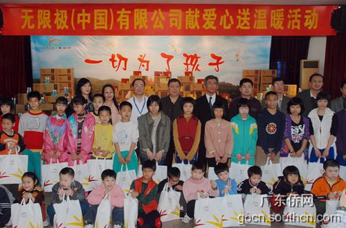 在活動(dòng)上,廣州市僑辦副主任折志凌受朱爾武委托,代表省市區(qū)僑務(wù)部門(mén)作了熱情洋溢的致辭。香港李錦記健康產(chǎn)品集團(tuán)副總裁楊國(guó)晉先生代表無(wú)限極(中國(guó))有限公司講話,詮釋了公司的慈善理念,介紹了此次活動(dòng)的緣由和安排,表示將一如既往地履行社會(huì)慈善的企業(yè)責(zé)任,并向廣州市社會(huì)(兒童)福利院贈(zèng)送價(jià)值133萬(wàn)元的物資。廣州市社會(huì)(兒童)福利院徐久院長(zhǎng)代表福利院感謝省市區(qū)三級(jí)僑辦的關(guān)心支持、感謝香港李錦記健康產(chǎn)品集團(tuán)、無(wú)限極(中國(guó))有限公司的慈善關(guān)懷,代表孩子們感謝社會(huì)各界和慈善人士的關(guān)愛(ài)!