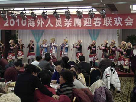 由澳洲海外親屬自行排演的15人的葫蘆絲演奏拉開文藝節(jié)目演出的帷幕。精彩的節(jié)目給觀眾以美好的藝術(shù)享受。演出期間還穿插了各片區(qū)海外親屬會(huì)員集體對(duì)海外游子的美好祝福。20個(gè)形式多樣的文藝節(jié)目全部由海外親屬自排自演,充分展示了他們的才華。