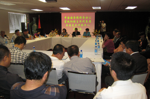 與奧克蘭華僑華人各界人士的座談會在中國駐奧克蘭總領館舉行,由總領事廖菊華主持,當?shù)貎S團、僑校、僑報負責人及專家學者等約50人與會,大家就共同關心的奧克蘭華僑華人群體的變化與問題研究、華僑華人身份與國籍問題、僑胞權益保護、華文教育與弘揚中華文化、和諧僑社建設及促進中外各領域交流和中國和平統(tǒng)一大業(yè)等,廣開思路、暢所欲言,深入交換看法和意見,積極為海外僑務工作的科學發(fā)展建言獻策。