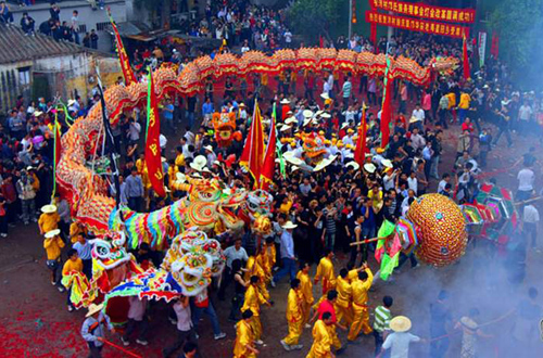 “泮村燈會”曾是少數(shù)有錢人的燈會,如今不僅是泮村全村人的燈會,還成為凝聚人心、凝聚僑心、振奮人心的橋梁和紐帶。為了參加舞燈會,在外出工作的本村人趕回來了,外地的親戚趕過來了,多年未見的海外鄉(xiāng)親趕回來了。正月十三日這一天,各村男女一部分參加醒獅隊、龍隊,還有一部分留在本村參加獅隊,或加入接待組迎接各地來賓,組織全村村民集中開餐。大家歡聚一堂,共聚情誼,共話家鄉(xiāng)變遷,開始醞釀投資家鄉(xiāng)的新計劃。因此,很多海外華僑寧愿春節(jié)不回來過年也要選擇在燈會這一天回來與親人團聚。(馮活源)
