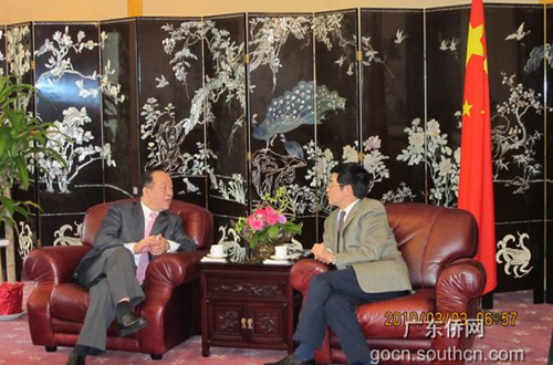 高占生對(duì)訪問團(tuán)的到來表示熱烈歡迎,對(duì)廣東省僑辦多年來的海外僑務(wù)工作深表贊賞,并就吳銳成提出的相關(guān)問題做了分析,提出了看法和建議,同時(shí)還就組織華僑華人回國(guó)看世博、看亞運(yùn)、社團(tuán)回鄉(xiāng)舉辦年會(huì)等進(jìn)行了具體的商談。