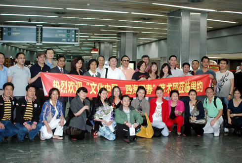 中新網(wǎng)3月5日電 據(jù)巴西《南美僑報》報道,“文化中國·四海同春”赴南美藝術(shù)團(tuán)3日晚間平安抵達(dá)本次訪演的最后一個城市——巴西里約熱內(nèi)盧,在當(dāng)?shù)貒H機(jī)場受到了里約華僑華人的熱烈歡迎,國僑辦副主任馬儒沛和藝術(shù)團(tuán)的演員們與僑胞們在機(jī)場合影留念。