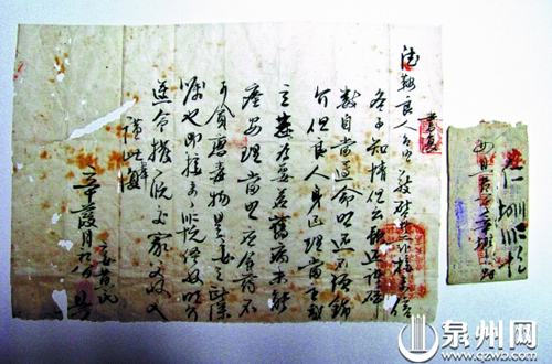 上圖為泉州市檔案館收藏的最早的僑批,系1911年十一月初八,一名晉江安海人的妻子寄給遠在菲律賓的丈夫的“回批”(回信),信中還寫到將丈夫寄來的錢都用在了哪里!盎嘏笔莾S批的一種,由于是由故鄉(xiāng)人寄往海外的回信,所以目前國內數量不多,更加珍貴。(葉舒雯 陳一妮)