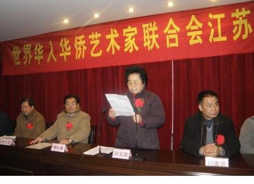 62歲的月牙湖書(shū)畫(huà)研究會(huì)會(huì)長(zhǎng)孫文霞當(dāng)選為江蘇分會(huì)主席。她在會(huì)上表示:協(xié)會(huì)的成立除旨在切磋交流書(shū)畫(huà)技術(shù),搭好藝術(shù)友誼橋梁,更重要的是繼承中華民族優(yōu)秀傳統(tǒng),弘揚(yáng)中華民族精神,為構(gòu)建和諧社會(huì),維護(hù)世界和平,做出應(yīng)有的貢獻(xiàn)。