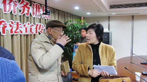 其中涉及的法規(guī)和政策都是與廣大歸僑僑眷切身利益密切相關的,在一個半小時的講座中,大家認真聽講,收獲良多。會后,王玲鼓勵每一位歸僑僑眷合法、合理地用好、維護好自己的權益,并且希望僑務干部們廣聽各方意見、積極建言獻策,為修訂、完善僑法出謀劃策。