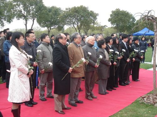 吳幼英、俞云波為董寅初銅像揭幕。市政協(xié)、市委統(tǒng)戰(zhàn)部、致公黨市委、市僑聯(lián)、市政府機(jī)關(guān)事務(wù)管理局領(lǐng)導(dǎo)及有關(guān)人員50余人參加活動(dòng)。