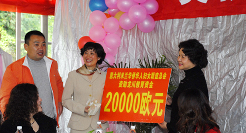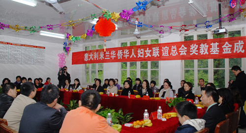 中新網(wǎng)4月7日電 據(jù)文成縣外僑辦消息,4月2日,在浙江省文成縣龍川中心學(xué)校隆重舉行意大利米蘭華僑華人婦女聯(lián)誼總會獎教基金成立儀式。由榮譽會長廖小平、會長趙小敏率領(lǐng)的米蘭華僑華人婦女聯(lián)誼總會代表團一行16位愛心女士,出席了獎教基金成立儀式,為龍川中心學(xué)校送上首期獎教基金20000歐元。