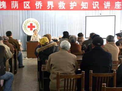 中新網(wǎng)4月19日電 據(jù)濟(jì)南市僑聯(lián)消息,為提高僑界群眾健康自救互救的意識(shí)和能力,普及衛(wèi)生救護(hù)知識(shí),4月15日,山東省濟(jì)南市槐蔭區(qū)僑聯(lián)在僑界示范社區(qū)——綠園社區(qū)舉辦了“僑界救護(hù)知識(shí)講座”,全區(qū)歸僑僑眷、社區(qū)居民、居委會(huì)工作人員40余人參加。