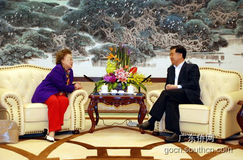 汪洋簡(jiǎn)要介紹了廣東經(jīng)濟(jì)社會(huì)發(fā)展和促進(jìn)經(jīng)濟(jì)發(fā)展方式轉(zhuǎn)變情況,希望以陳香梅女士為杰出代表的在美華僑華人,為中美民間友好往來繼續(xù)作出新貢獻(xiàn),并對(duì)廣東改革開放和現(xiàn)代化建設(shè)多提寶貴意見和建議。
