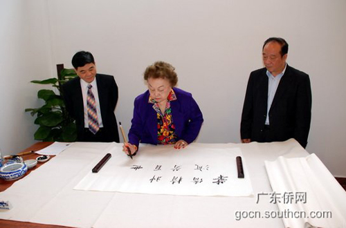 18日上午,陳香梅女士一行在拜會(huì)汪洋后,在吳銳成等的陪同下,還饒有興致地參觀了廣東省華僑博物館。當(dāng)她看到博物館專門展出華僑華人捐贈(zèng)的“飛虎隊(duì)”的有關(guān)資料、物品時(shí),感慨萬分,即筆揮毫,為博物館題詞“華僑精神,流芳百世”。