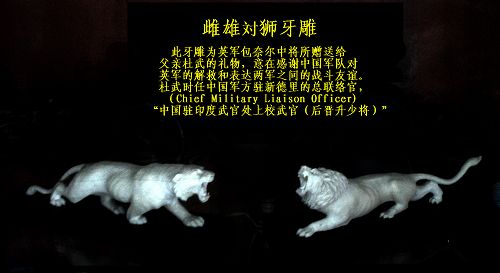 據(jù)悉,此次捐贈儀式交接的一對印度象牙精雕的雌雄獅子,是1943年由英軍元帥蒙巴頓的辦公室主任鮑威爾中將贈送給杜武將軍的私人禮物,意在感謝中國遠(yuǎn)征軍于1942年4月在緬甸仁安羌解救7000名被日軍包圍幾乎彈盡糧絕的英緬軍官兵和500名西方國家的記者、教師和傳教士。這對牙雕曾輾轉(zhuǎn)于印度,重慶,南京,渥太華,卡爾加里。歷經(jīng)68年的蹉跎歲月,如今由侵華日軍南京大屠殺遇難同胞紀(jì)念館收藏并展出。這對牙雕是中國抗戰(zhàn)史上非常稀有的歷史文物,是中國遠(yuǎn)征軍英勇作戰(zhàn),解救英軍的歷史佐證,具有較高的歷史價(jià)值。(許嘉明)
