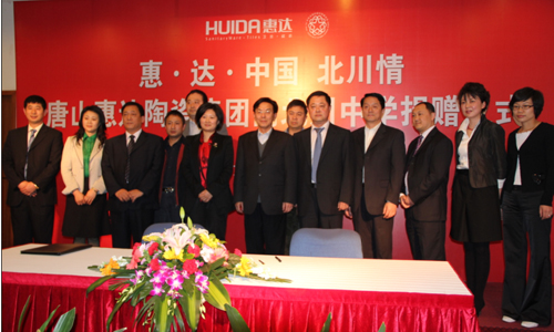 王永樂代表中國僑聯(lián)對惠達(dá)陶瓷(集團(tuán))股份有限公司支持援建北川中學(xué)的義舉表示感謝。他說,惠達(dá)集團(tuán)是在地震廢墟上開始創(chuàng)業(yè)發(fā)展起來的,經(jīng)歷過唐山地震的惠達(dá)集團(tuán)對汶川地震有更為深切的體會;葸_(dá)集團(tuán)在得知中國僑聯(lián)援建北川中學(xué)的消息后,迅即與中國僑聯(lián)取得聯(lián)系,向北川中學(xué)捐贈所有的潔具產(chǎn)品,并以企業(yè)的成本價向?qū)W校提供裝修所用的優(yōu)質(zhì)瓷磚,正是有了像惠達(dá)集團(tuán)這樣有社會責(zé)任感的企業(yè)的大力支持,中國僑聯(lián)援建北川中學(xué)的項目才能取得今天的成績。