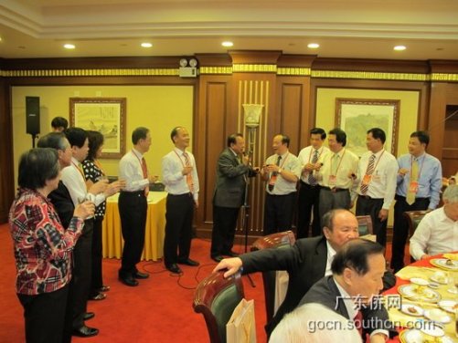 中新網(wǎng)5月10日電 據(jù)廣東僑網(wǎng)消息,5月7日晚,廣東省僑辦主任吳銳成、副主任黎靜在北京京西賓館設(shè)宴歡迎參加第五屆世界華僑華人社團聯(lián)誼大會的部分僑領(lǐng)。