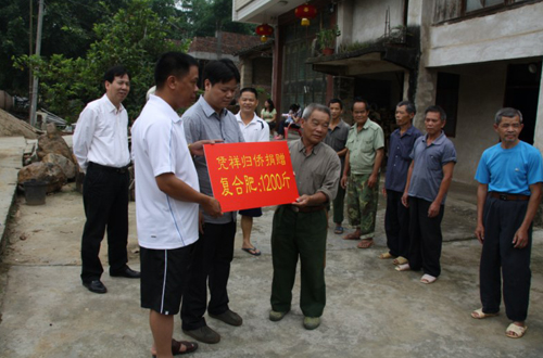 平而村地處中越邊境,有散居歸僑15戶。憑祥市今年遭遇罕見的特大干旱,農(nóng)民的春耕生產(chǎn)受到嚴(yán)重的影響。為了幫助散居在農(nóng)村的歸僑開展春耕生產(chǎn),憑祥市僑聯(lián)在僑界中廣泛開展“一幫一”、“多幫一”的“僑幫僑”支農(nóng)惠農(nóng)活動(dòng),得到僑資企業(yè)的大力支持,他們慷慨解襄,出資為農(nóng)村的歸僑購買了農(nóng)用肥料,幫助他們解決生產(chǎn)上的困難。此次憑祥市僑聯(lián)專程到平而村為歸僑送去價(jià)值2000元肥料。(周德林)