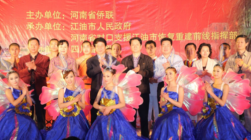 此次演出是在河南省對(duì)口援建江油的任務(wù)基本完成和由中國(guó)僑聯(lián)援建的北川中學(xué)即將竣工之際,河南省僑聯(lián)為了表達(dá)對(duì)援建、捐建四川地震災(zāi)區(qū)建設(shè)者的崇高敬意,組織近50名演員專場(chǎng)慰問(wèn)演出。四川省僑聯(lián)從組織接待、提供用車、制定方案、聯(lián)絡(luò)協(xié)調(diào)、勘測(cè)場(chǎng)地、組織參觀、安全保障等給予了全方位的配合和支持。綿陽(yáng)市僑聯(lián)、江油外僑辦積極參與,組織有序,使2000多名援建工作者和當(dāng)?shù)厝罕、學(xué)生觀看了演出,達(dá)到了慰問(wèn)目的。(趙建中)