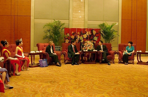 中新網(wǎng)6月23日電 據(jù)國(guó)僑辦網(wǎng)站消息,6月17日晚,國(guó)務(wù)院僑辦副主任任啟亮在北京新世紀(jì)飯店會(huì)見并宴請(qǐng)了由夏威夷中華總商會(huì)主席劉廣義率領(lǐng)的“第六十一屆水仙花皇后友好訪問團(tuán)”全體成員。