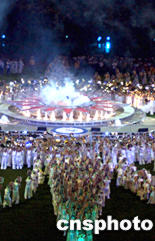 第十四屆釜山亞運(yùn)會(huì)閉幕式十四日晚在釜山社稷主體育場(chǎng)舉行。圖為閉幕式上的主題晚會(huì)“歸鄉(xiāng)”一景。中新社圖 武仲林 攝