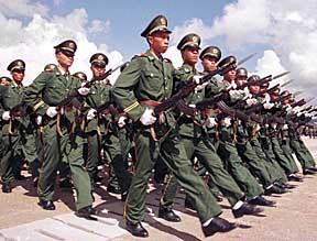 在澳門回歸倒計(jì)時(shí)一百天即將到來(lái)的時(shí)刻,廣東公安武警邊防部隊(duì)八日在珠海舉行聲勢(shì)浩大的“迎澳門回歸軍事表演”。來(lái)自珠海、深圳和廣州邊防指揮學(xué)校的千余名武警官兵,匯集珠海體育場(chǎng)進(jìn)行軍事表演。