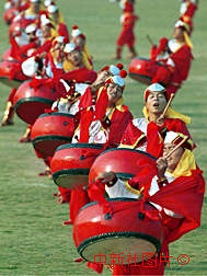 解放軍駐澳門部隊(duì)?wèi)?zhàn)士敲起威風(fēng)鑼鼓,表達(dá)迎接澳門回歸祖國(guó)的喜悅心情。