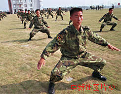 為了更好地做好澳門特別行政區(qū)防務(wù)工作,以及必要時(shí)協(xié)助特區(qū)政府維護(hù)社會(huì)治安和救災(zāi),解放軍駐澳部隊(duì)官兵在常規(guī)軍事訓(xùn)練中增加散打、南拳等訓(xùn)練科目,圖為拳術(shù)演練。作者:王麗南