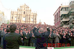 澳督九日與政府部門主管級人員會晤并且在著名的大三巴牌坊合影后,招手告別。