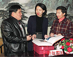 今年四十五歲的北京殘疾人周志武(左),近日將自己和愛人親自攝影、印放并制作的五十本《今日北京》攝影集,交予國(guó)務(wù)院港澳辦澳門司的負(fù)責(zé)人,委托轉(zhuǎn)交澳門殘聯(lián)。