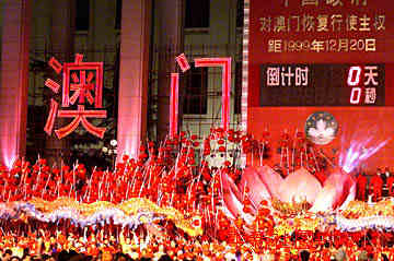 一九九九年十二月二十日零點(diǎn)零分,北京天安門廣場澳門回歸倒計時牌前一片歡騰。(本社記者天安門廣場零點(diǎn)現(xiàn)場數(shù)碼傳真)作者:滿會喬