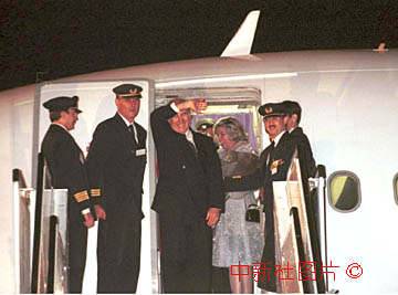 澳門總督韋奇立二十日子夜在政權交接儀式禮成后,與夫人登上飛機,最后揮手告別。中新社傳真 賈國榮攝