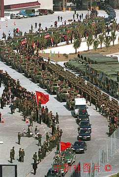 中國人民解放軍駐澳門部隊二十日中午十二時編隊整齊威嚴,經(jīng)關(guān)閘進入澳門。 中新社傳真 毛建軍攝