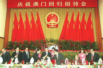 為慶祝澳門順利回歸,二十日下午首都各界人士在北京人民大會堂歡聚一堂,參加國務(wù)院舉行的慶祝澳門回歸招待會。作者:任海霞