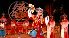 京劇的前身--徽劇 徽劇,淵源于明代的"徽池雅調(diào)"。明朝嘉靖年間,江西弋陽腔流傳到安徽青陽,貴池一帶,與當(dāng)?shù)孛癖娤猜剺芬姷拿耖g曲調(diào)相結(jié)合,創(chuàng)造了新腔,形成了具有當(dāng)?shù)氐胤教厣那嚓柷;青陽腔又受到民間山歌小調(diào)和昆曲的影響,長期發(fā)展而形成今天的徽劇。 清朝乾隆年間,徽劇名藝人高朗亭,郝天壽等,把徽劇帶到揚(yáng)州演出。當(dāng)時(shí)揚(yáng)州是全國文化中心之一,是"花部"的集中地,但很快即被藝術(shù)精湛的徽劇壓倒。乾隆五十五年,高朗亭又帶到了北京,受到了北京觀眾的歡迎。接著,又引起"四喜","春臺(tái)","和春"等徽班進(jìn)京。 徽劇進(jìn)京不久,漢劇也進(jìn)京,徽劇又從漢劇中吸收了西皮,進(jìn)一步豐富,發(fā)展了自己的聲腔。從此,徽劇不僅闖進(jìn)了皇宮,振動(dòng)了京城,而且廣泛流傳,影響了全國.它在北方扎下根子,逐漸吸收了北方的京腔,其高腔與北方語言結(jié)合起來,發(fā)展成為京劇。它在南方的戲曲影響也十分深遠(yuǎn),江西的贛劇、四川的川劇、廣東的粵劇、廣西的桂劇、云南的滇劇,都受到徽劇不同程度的影響。 對徽劇表演藝術(shù)有著突出貢獻(xiàn)的杰出代表是老藝人程長庚。程長庚名椿,字玉珊,安徽潛山人。他把徽音、京音、楚音兼收并用,脫俗創(chuàng)新,卓然成家,對徽劇來說,他起了承前作用,對京戲來說,他起了起后作用,因此,他成為京劇的開山祖師。 徽劇的表演藝術(shù),豐富而多采。它講究平臺(tái)與高臺(tái)武功,講究身段、亮相的雕塑美,講究人物形象的塑造和畫面氣派等。平臺(tái)與高臺(tái)武功在徽劇里最為突出,平臺(tái)如"獨(dú)腳單踢"、"叉腿單踢"、"刀門"、"飛叉"等都異常驚險(xiǎn),至于高臺(tái)武工,更為險(xiǎn)要,一般演員要翻三張桌子,有的要翻七張桌子。身段、亮相,在徽戲里很有雕塑藝術(shù)感。徽劇注重集體表演,必要時(shí)眾歌齊舞,顯得氣勢壯偉,場面熱烈;談〉膭∧亢芏,據(jù)記載有一千四百零四個(gè),因年代較久,多為手抄本,不少的本子以失傳。解放后,經(jīng)過挖掘整理,富有徽劇特色的代表劇目有:《義虎報(bào)》、《巧姻緣》、《齊王點(diǎn)馬》、《水淹七軍》等。